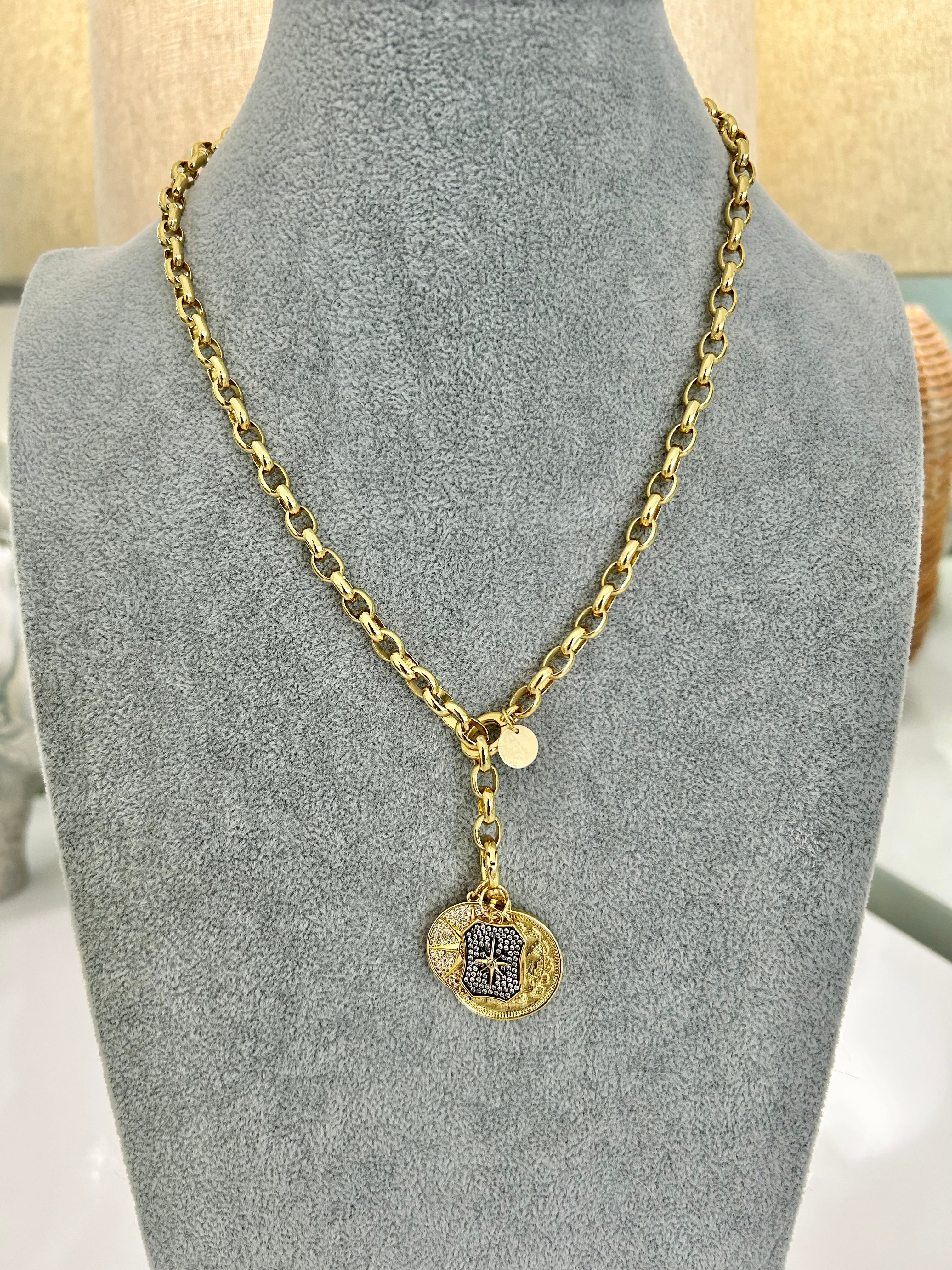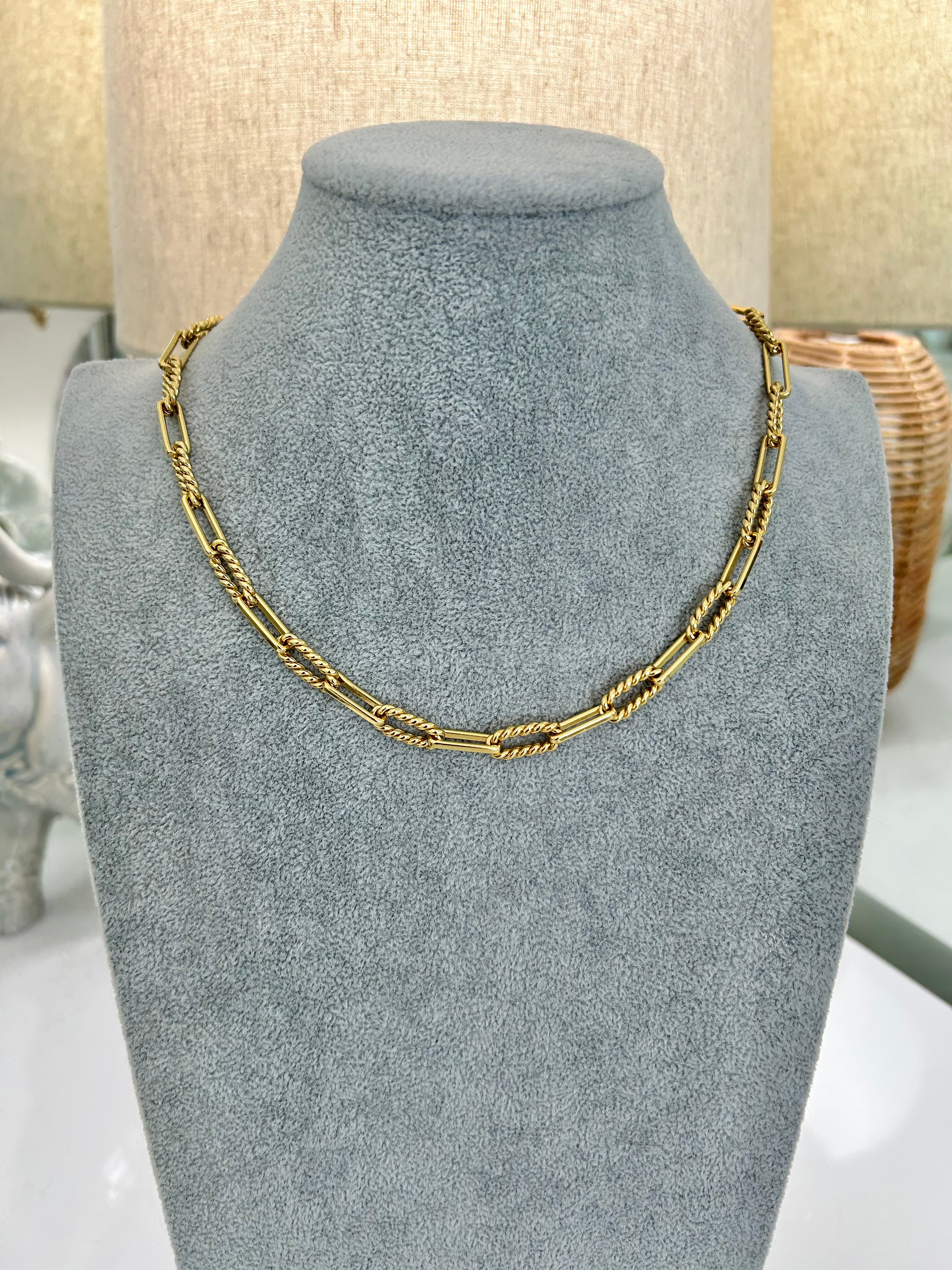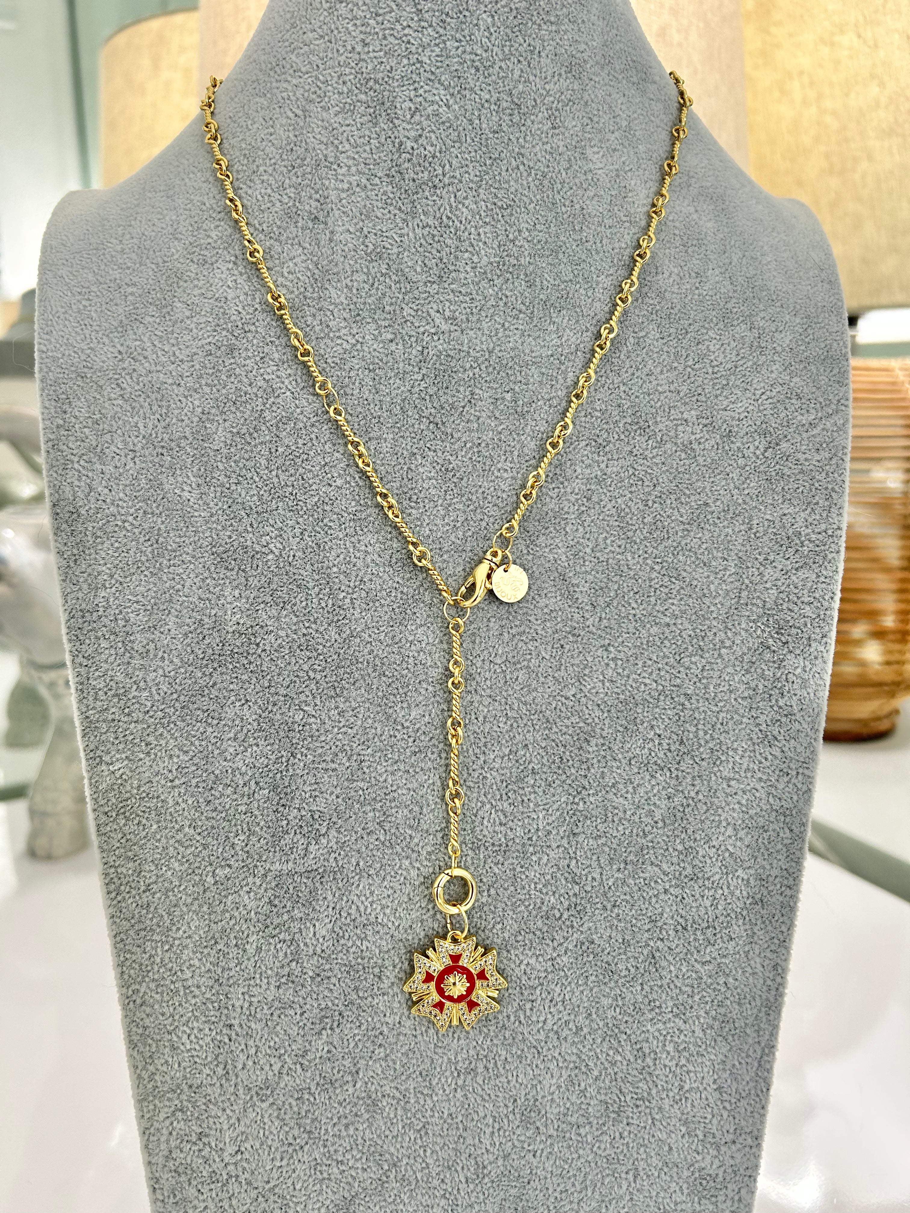 CAPITAINE – 18K Gold-Filled Twisted Link Chain with Enamel Badge Charm (22")