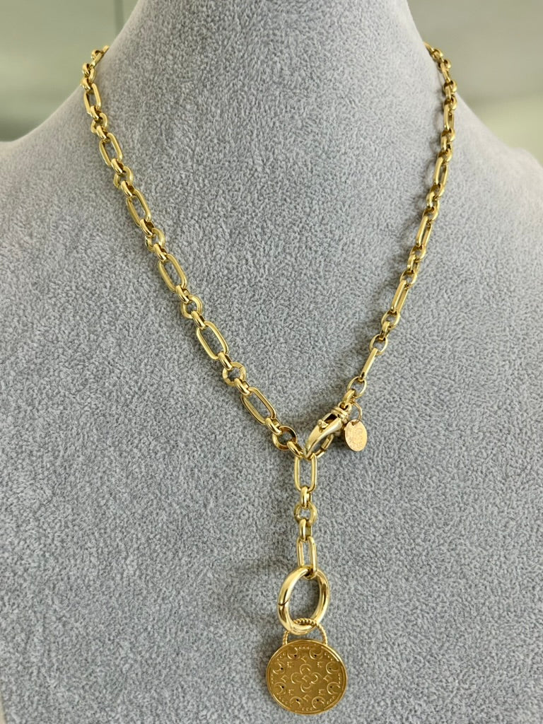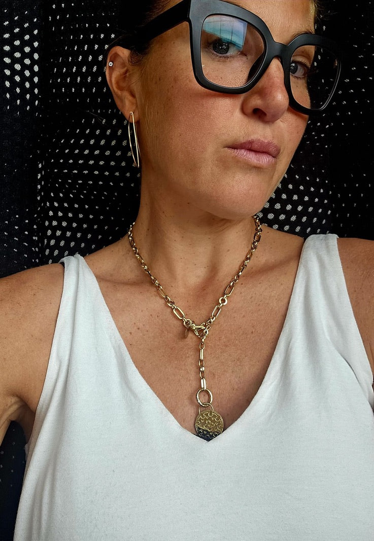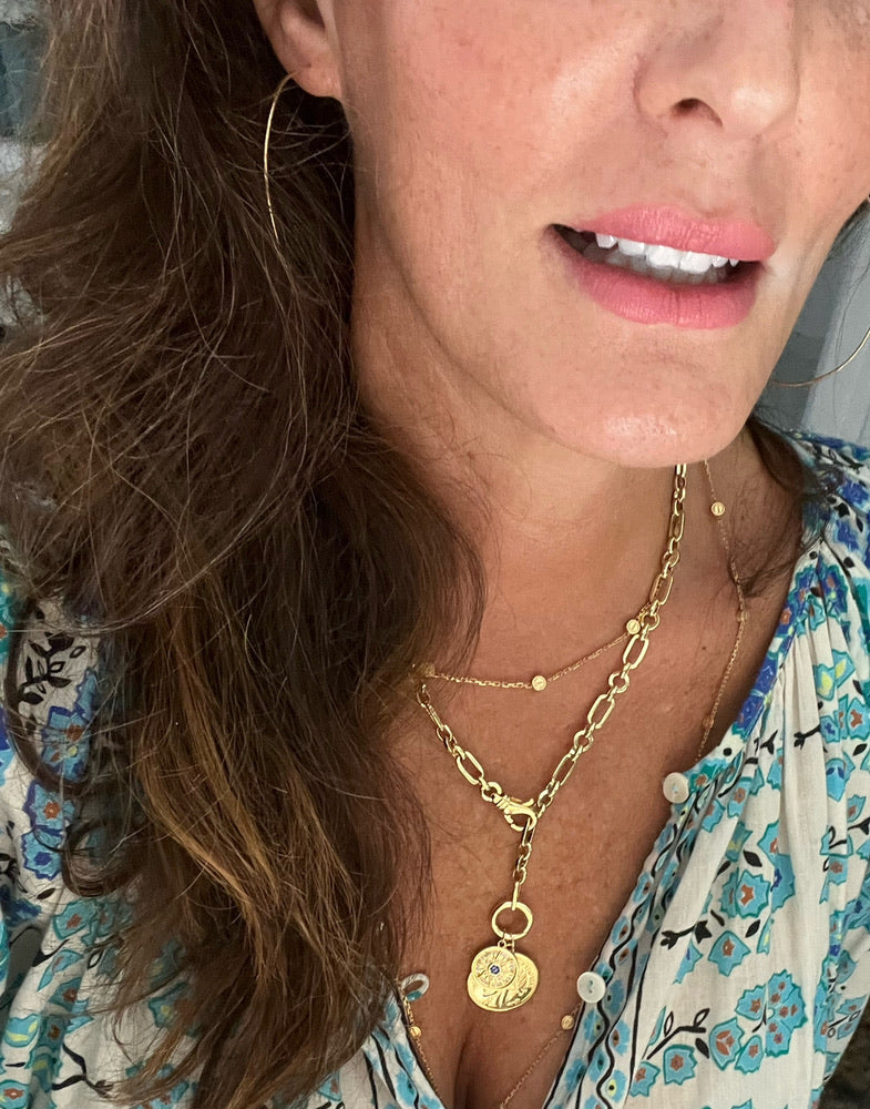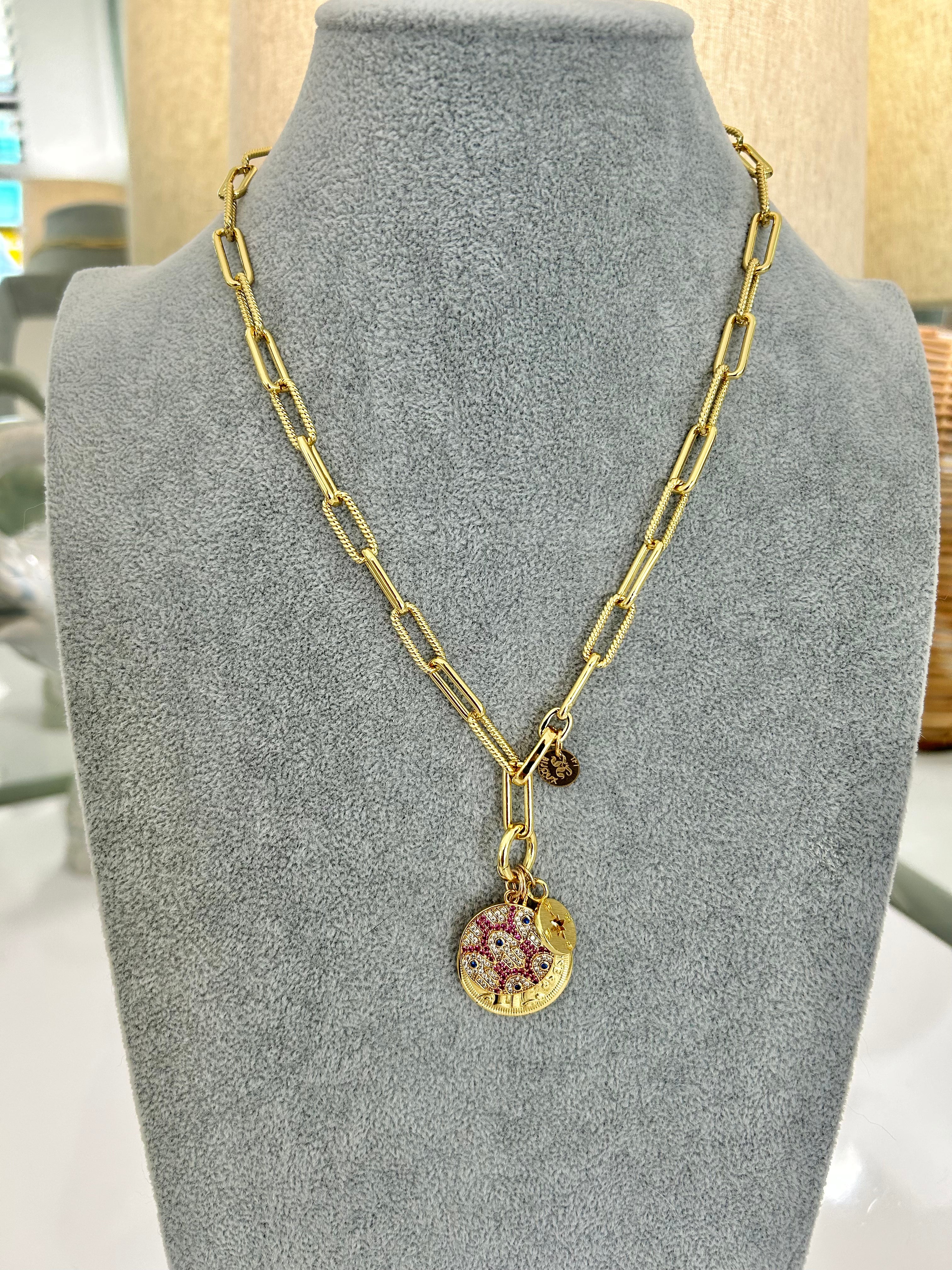 CAPITAINE – 18K Gold-Filled Twisted Link Chain with Enamel Badge Charm (22")