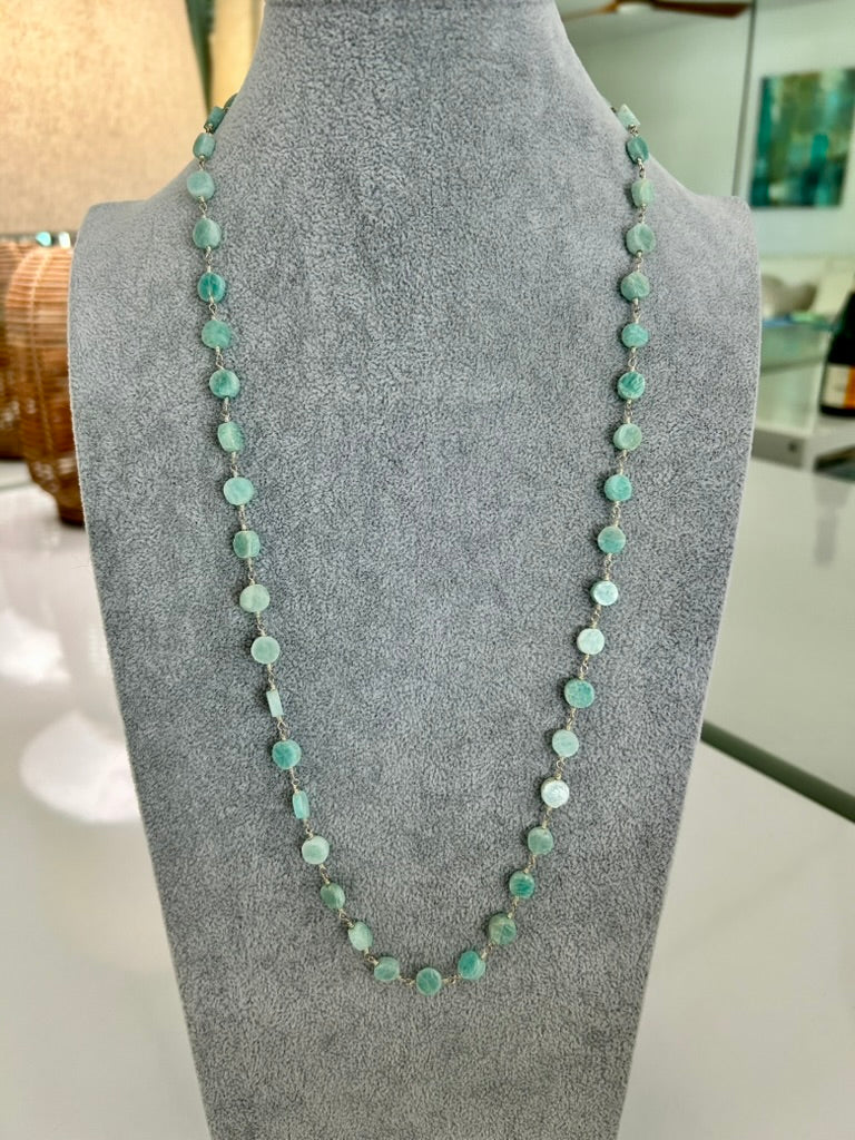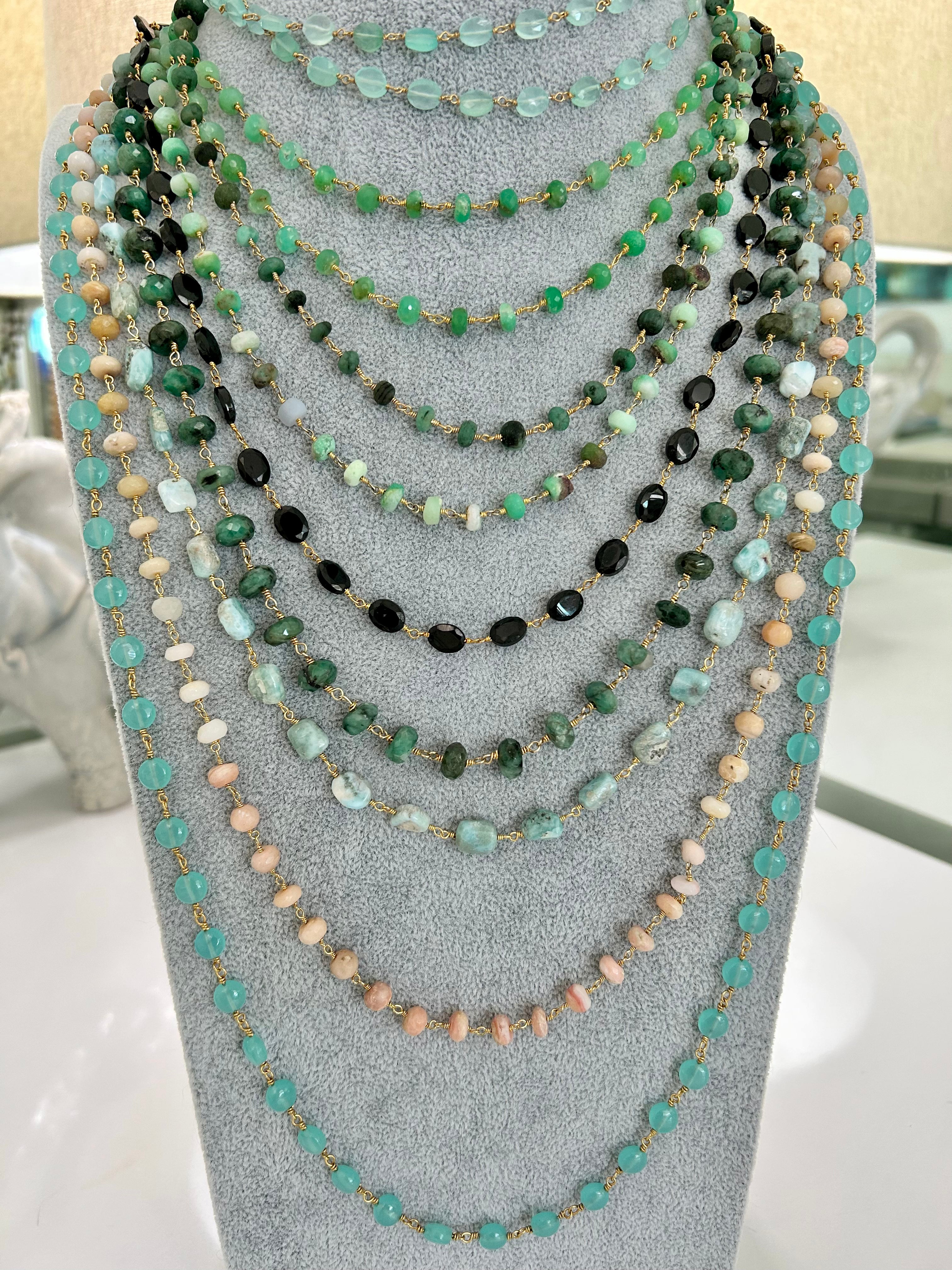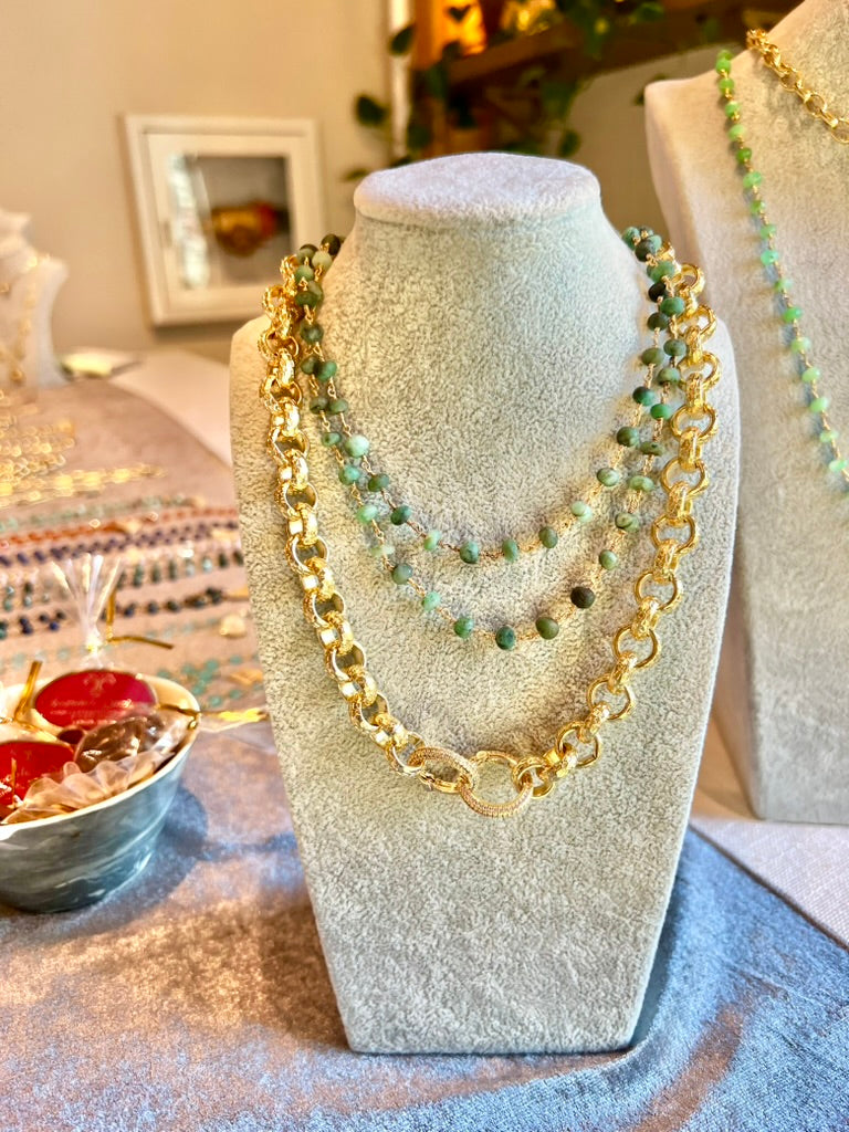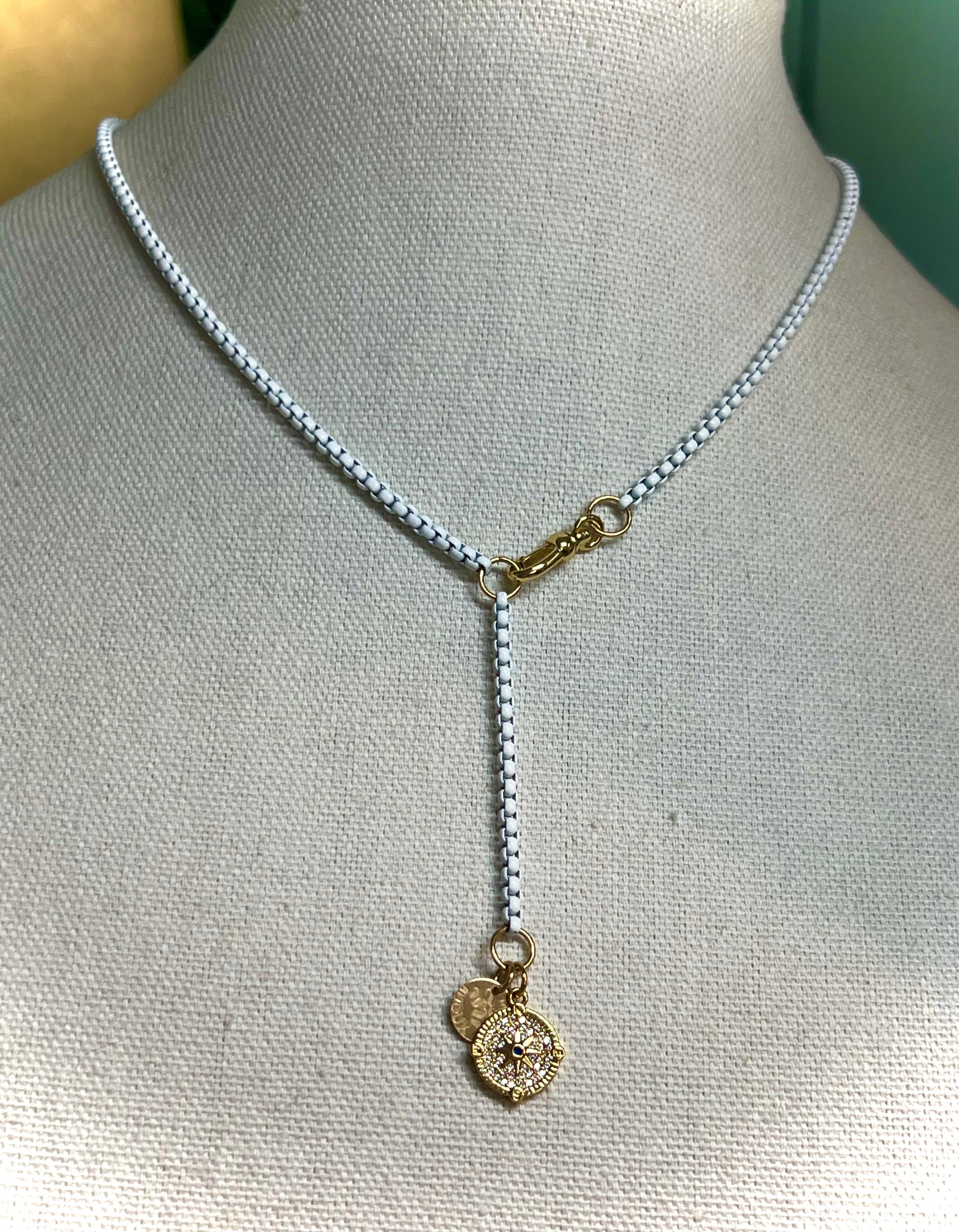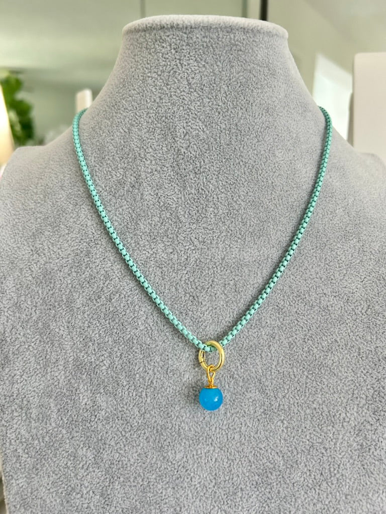 AZUR (Turquoise) Enamel Chain Necklace with Natural Chalcedony Pendant (18"–20")