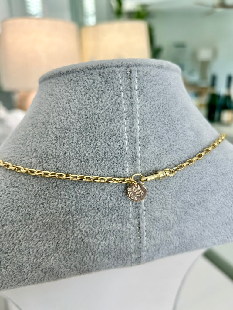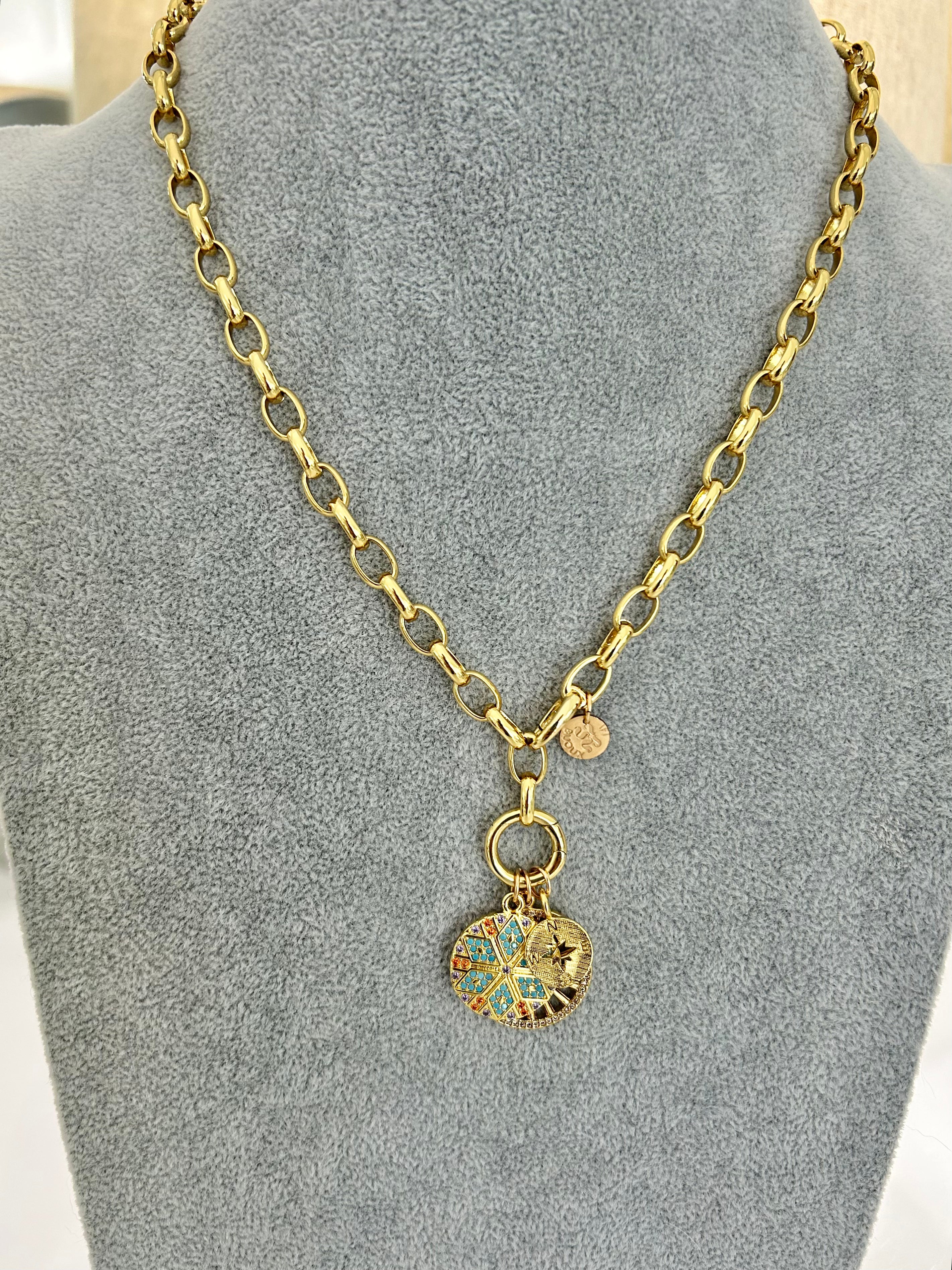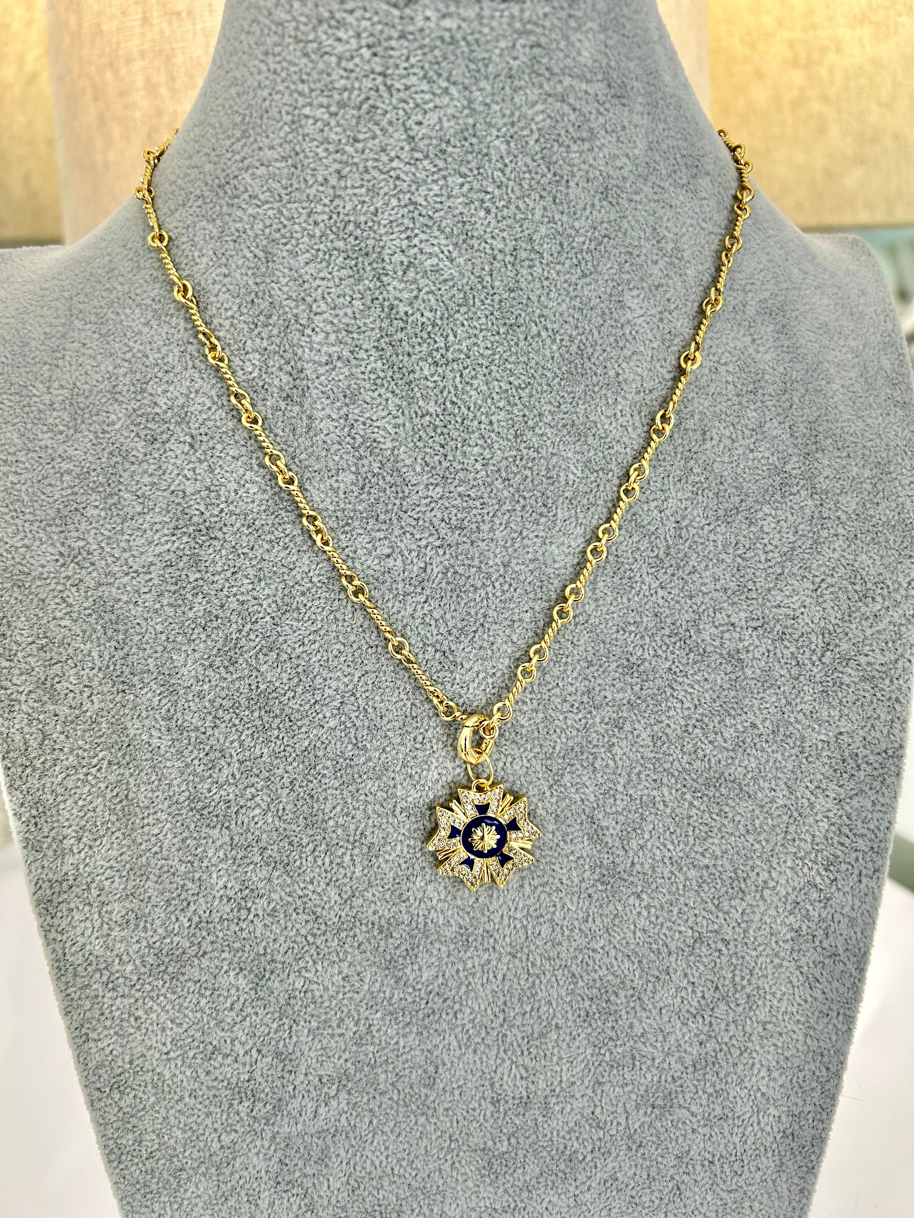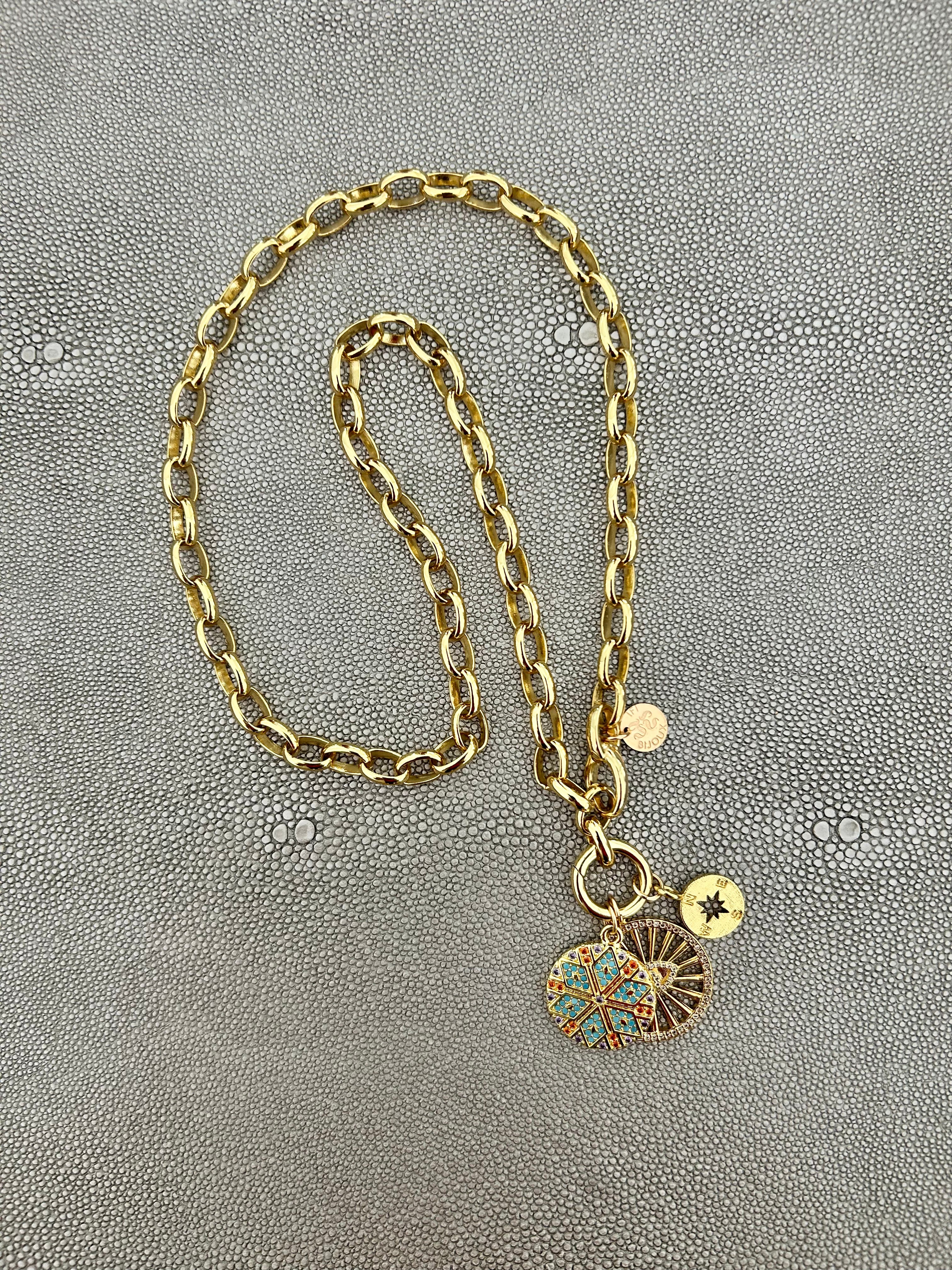 CAPITAINE – 18K Gold-Filled Twisted Link Chain with Enamel Badge Charm (22")
