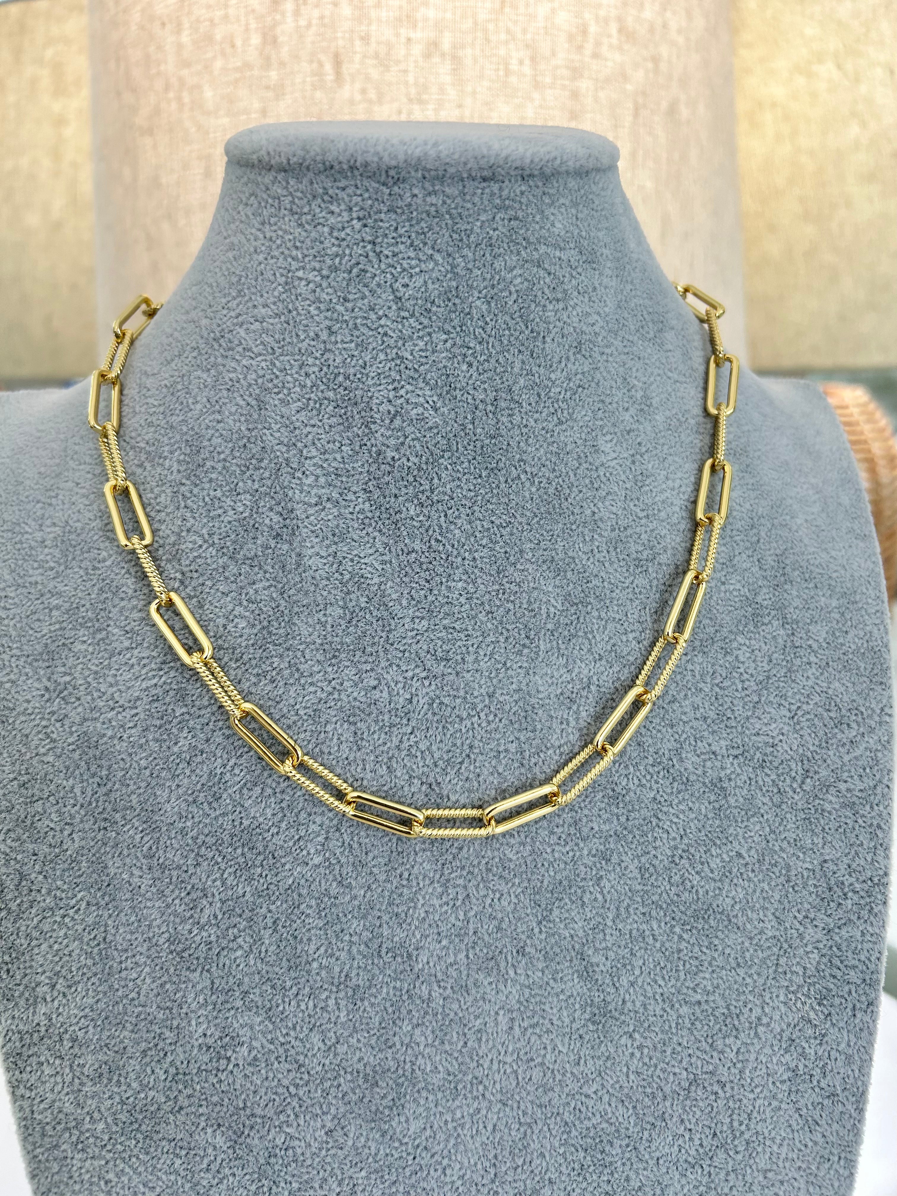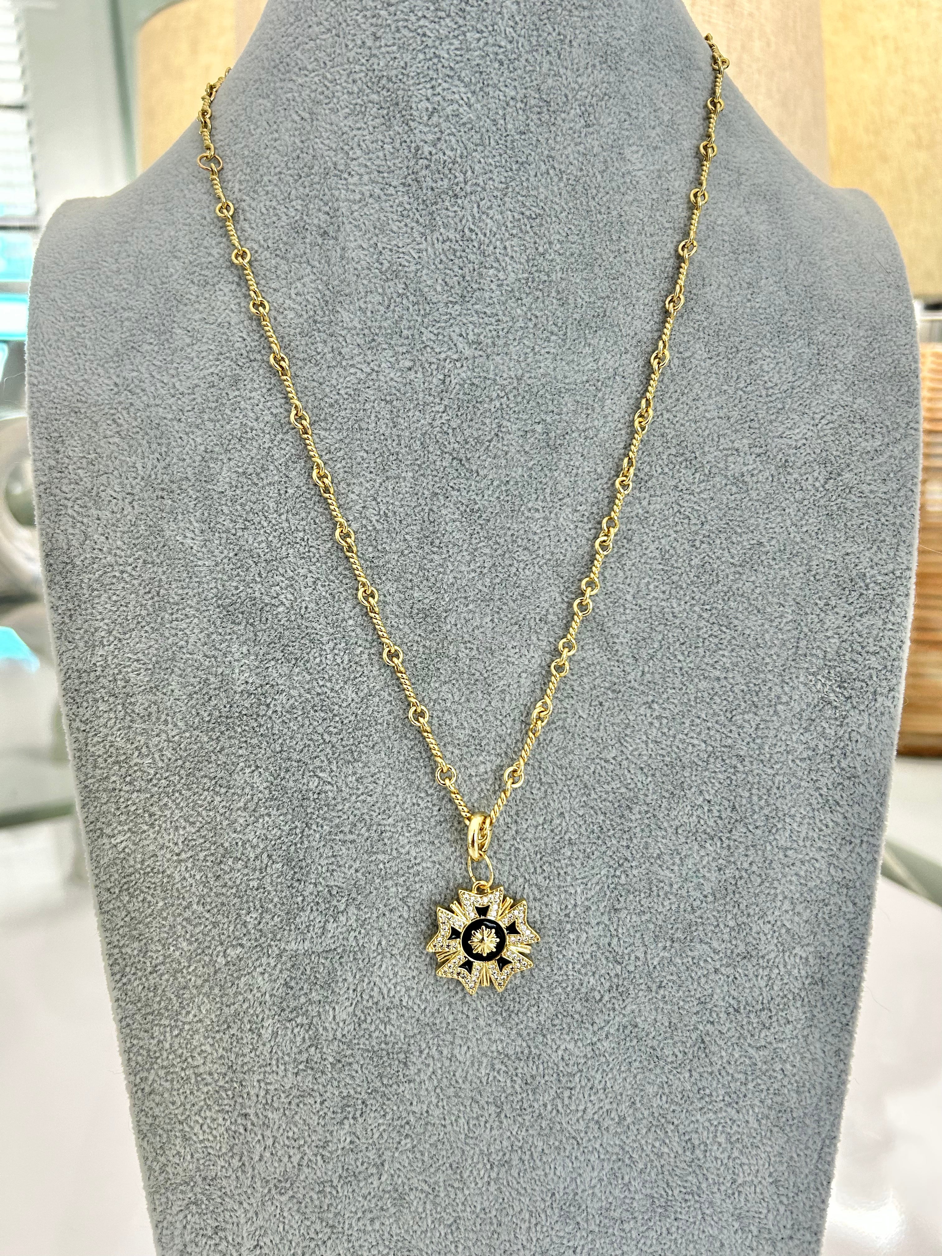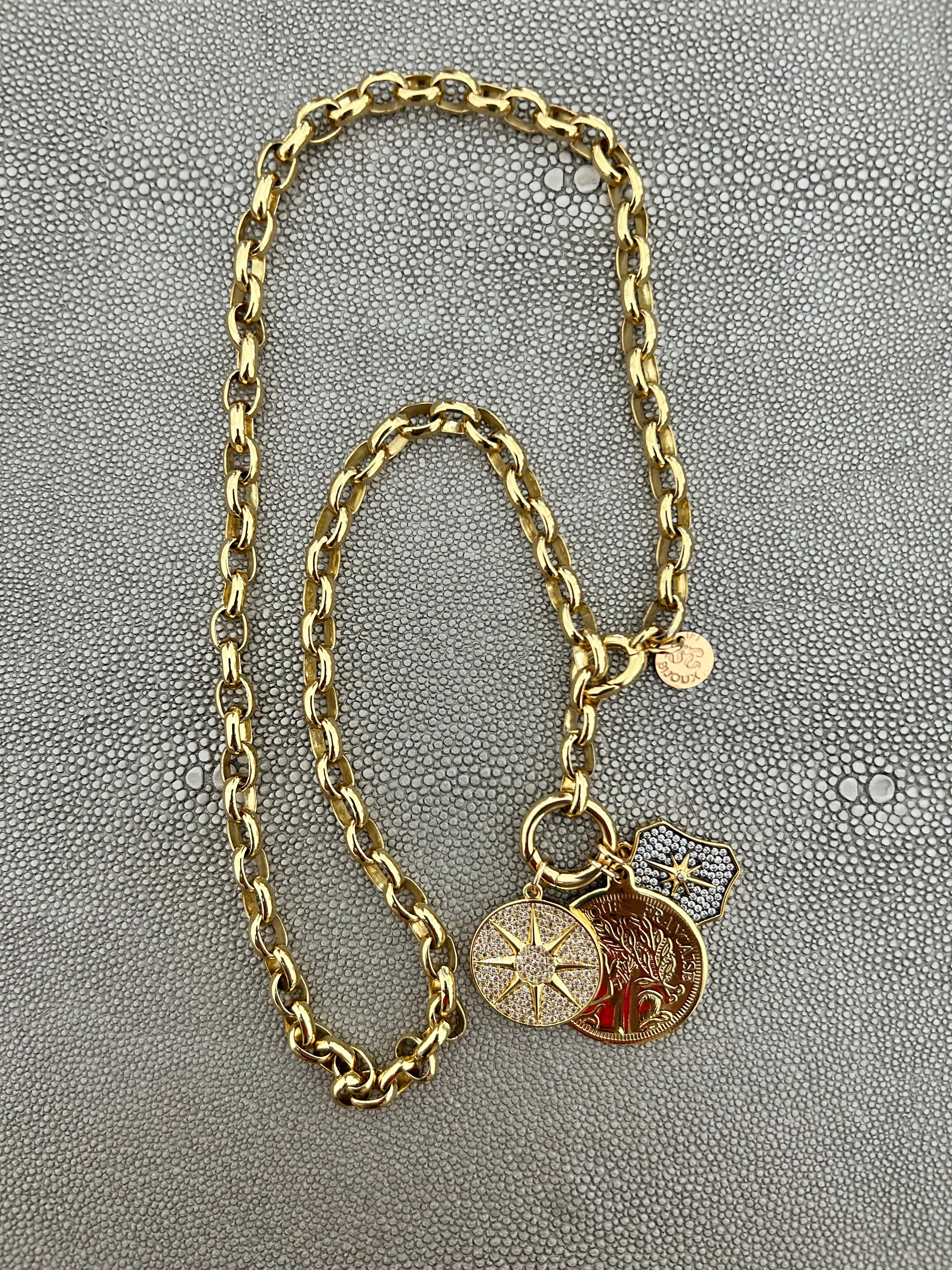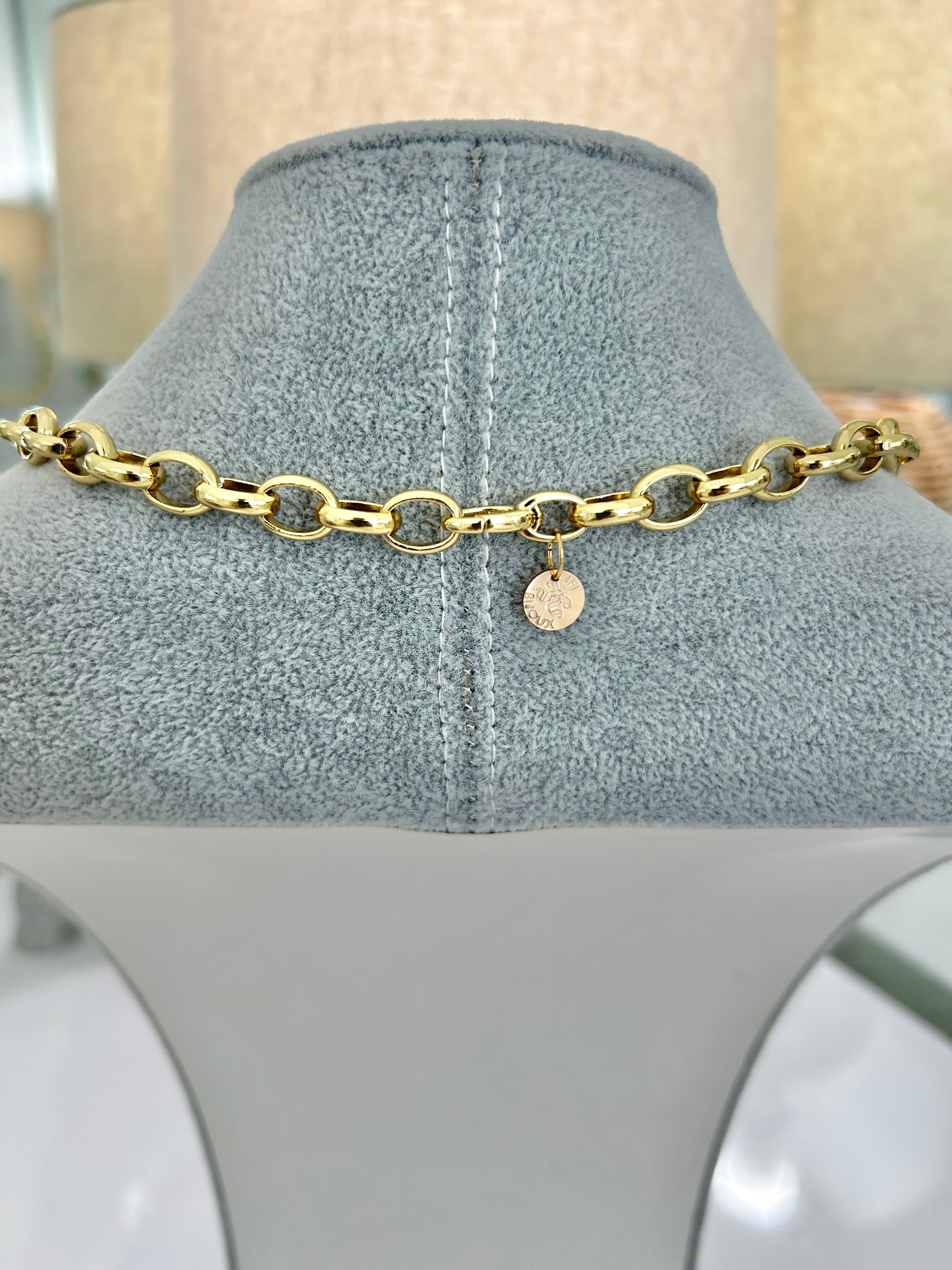 CAPITAINE – 18K Gold-Filled Twisted Link Chain with Enamel Badge Charm (22")