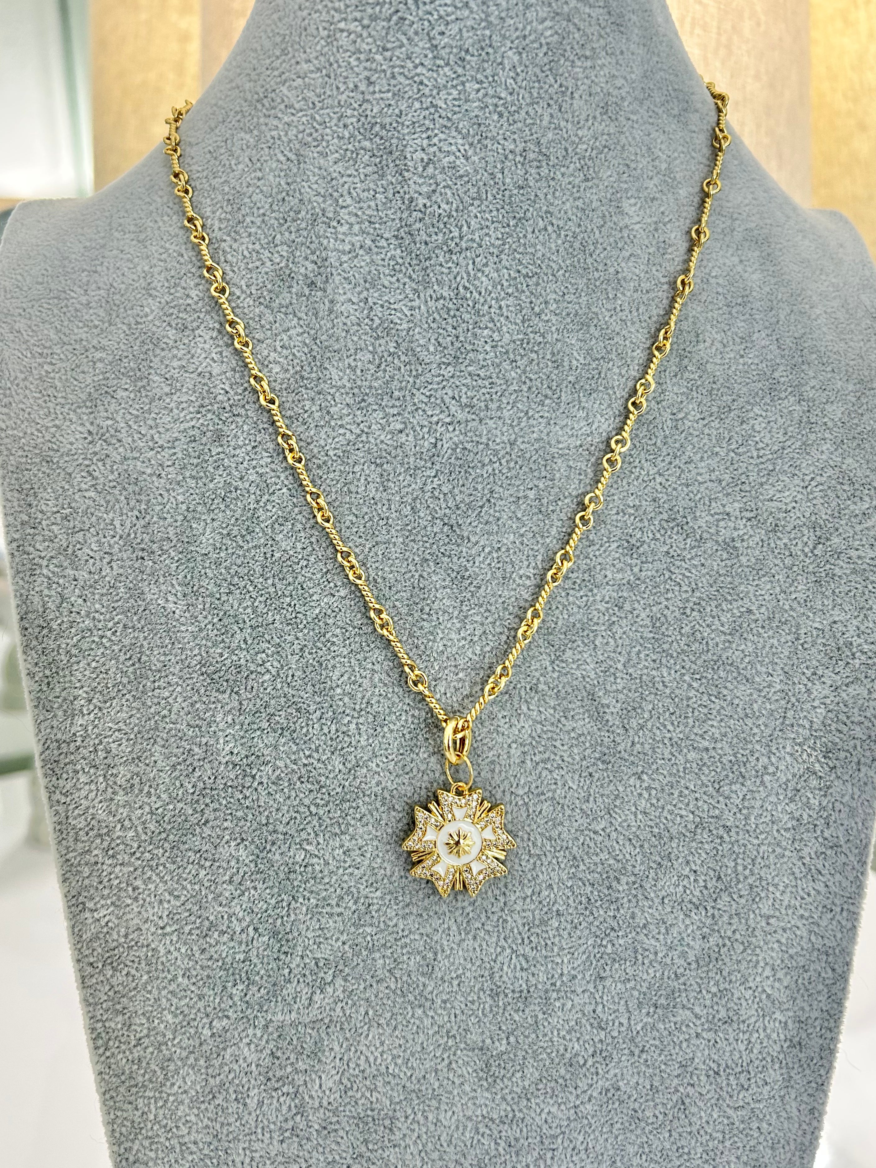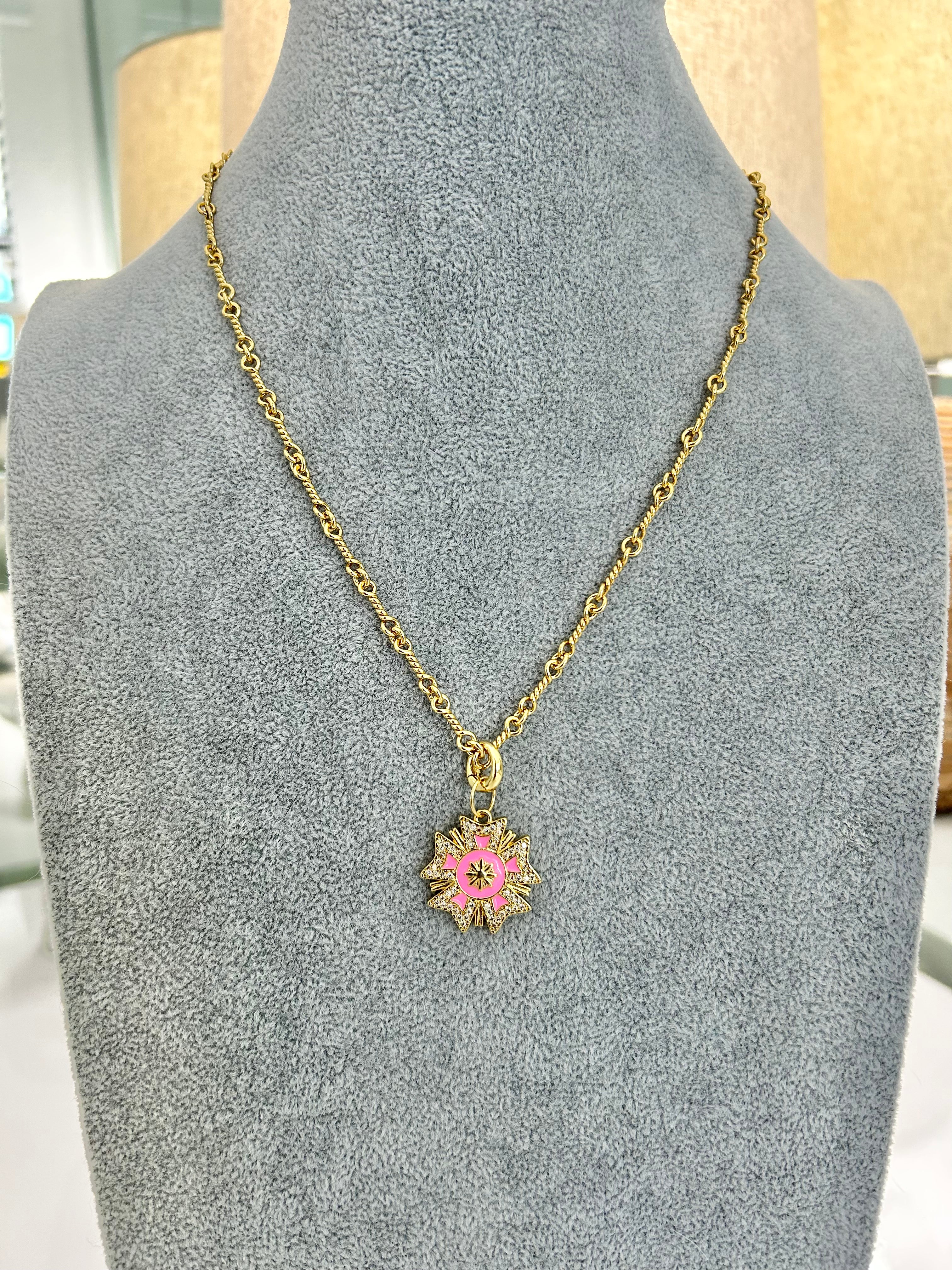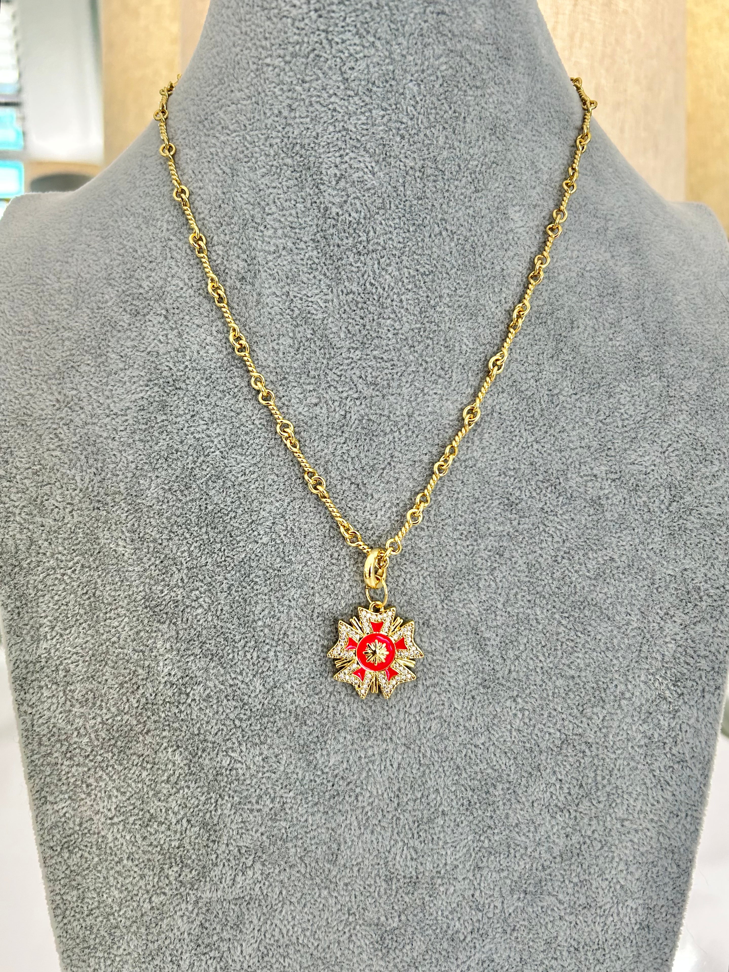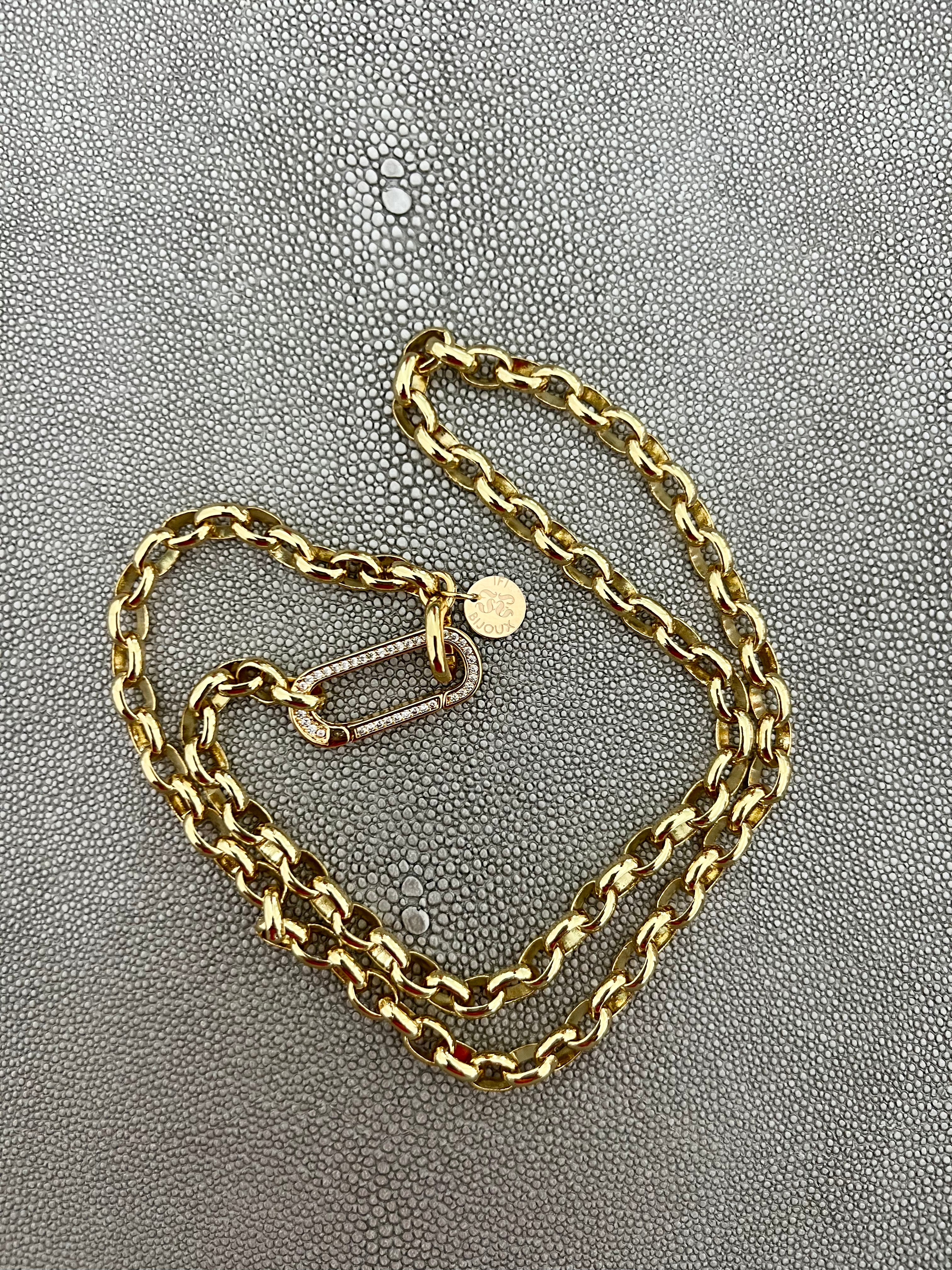 CAPITAINE – 18K Gold-Filled Twisted Link Chain with Enamel Badge Charm (22")