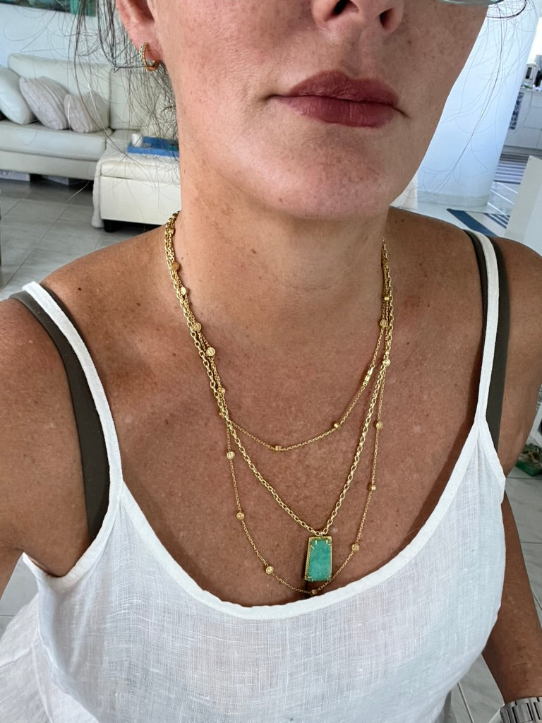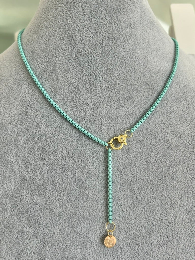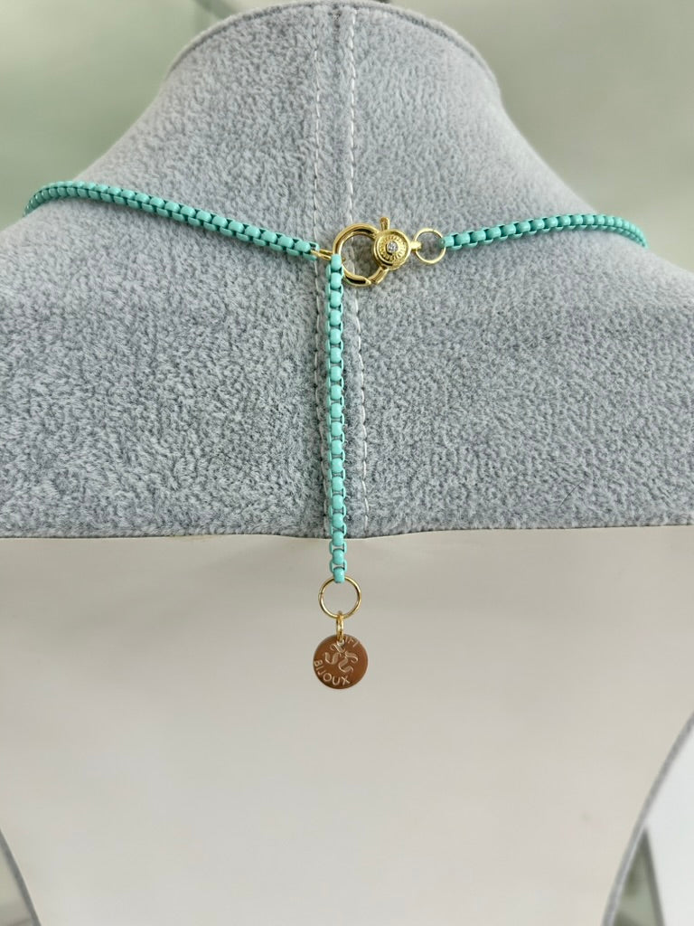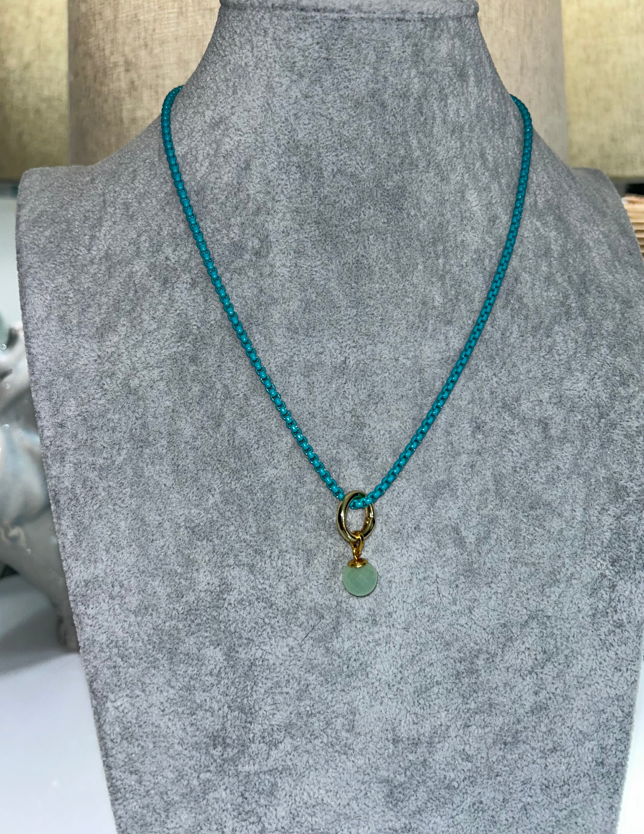 AZUR (Turquoise) Enamel Chain Necklace with Natural Chalcedony Pendant (18"–20")