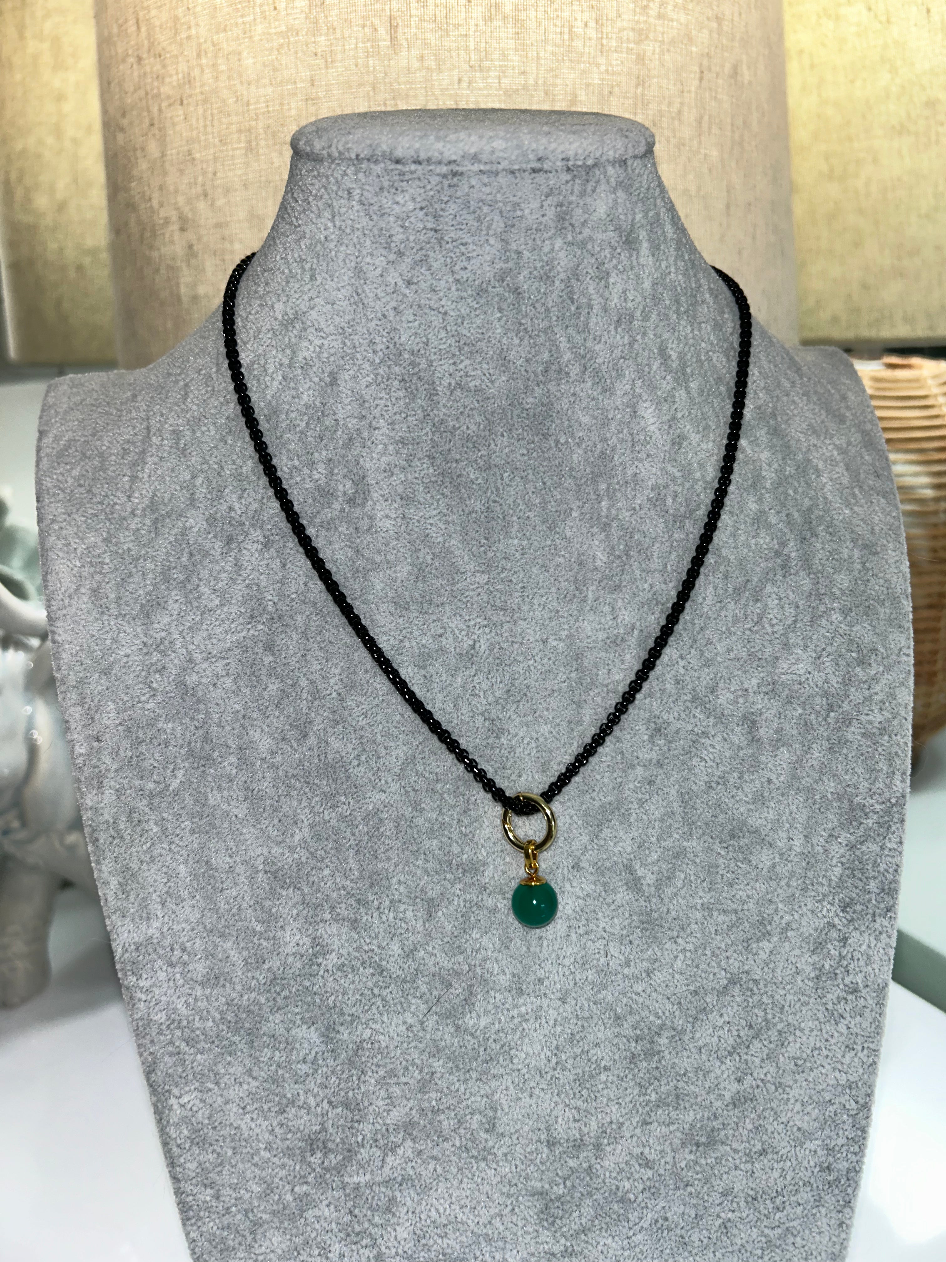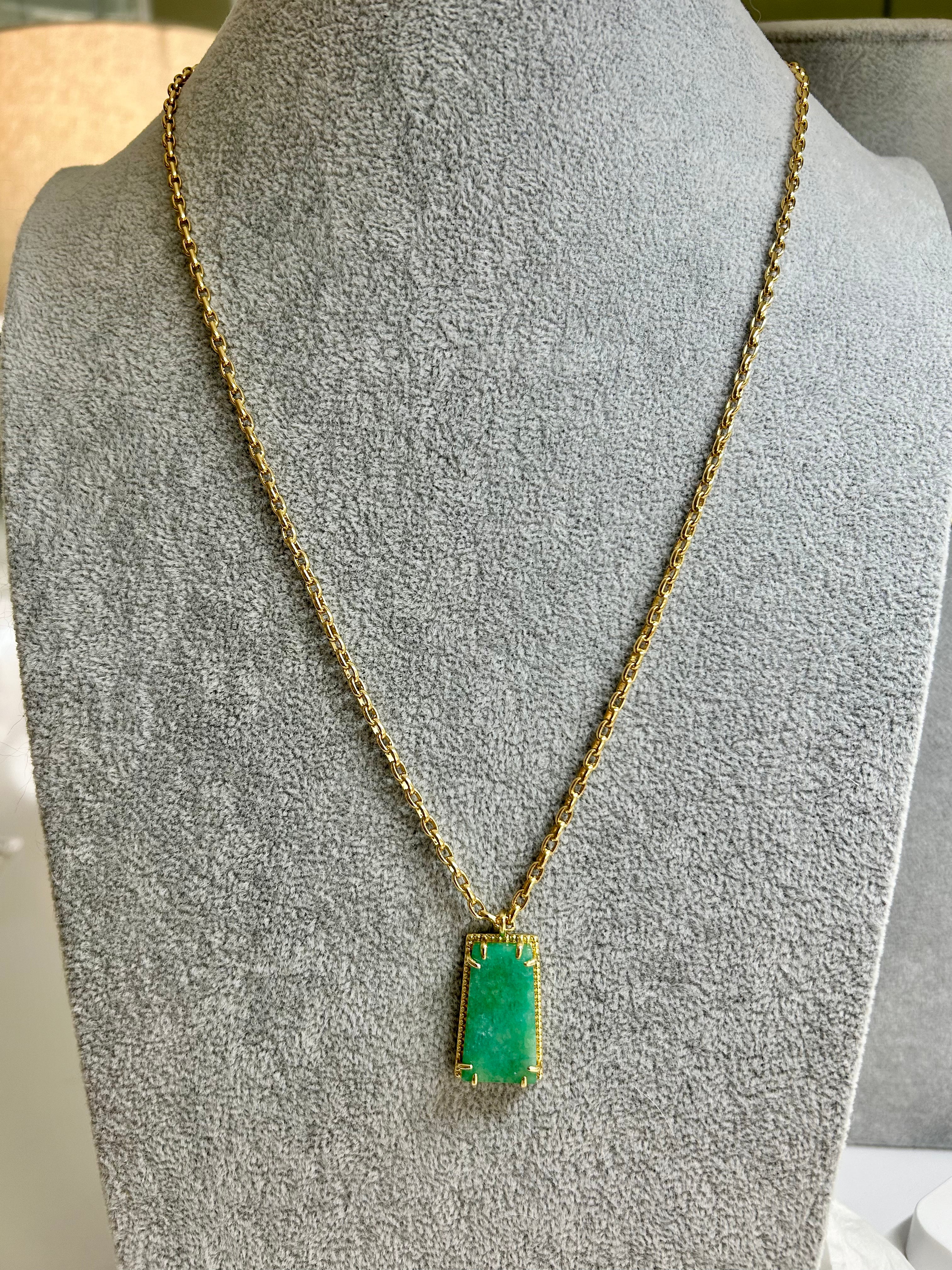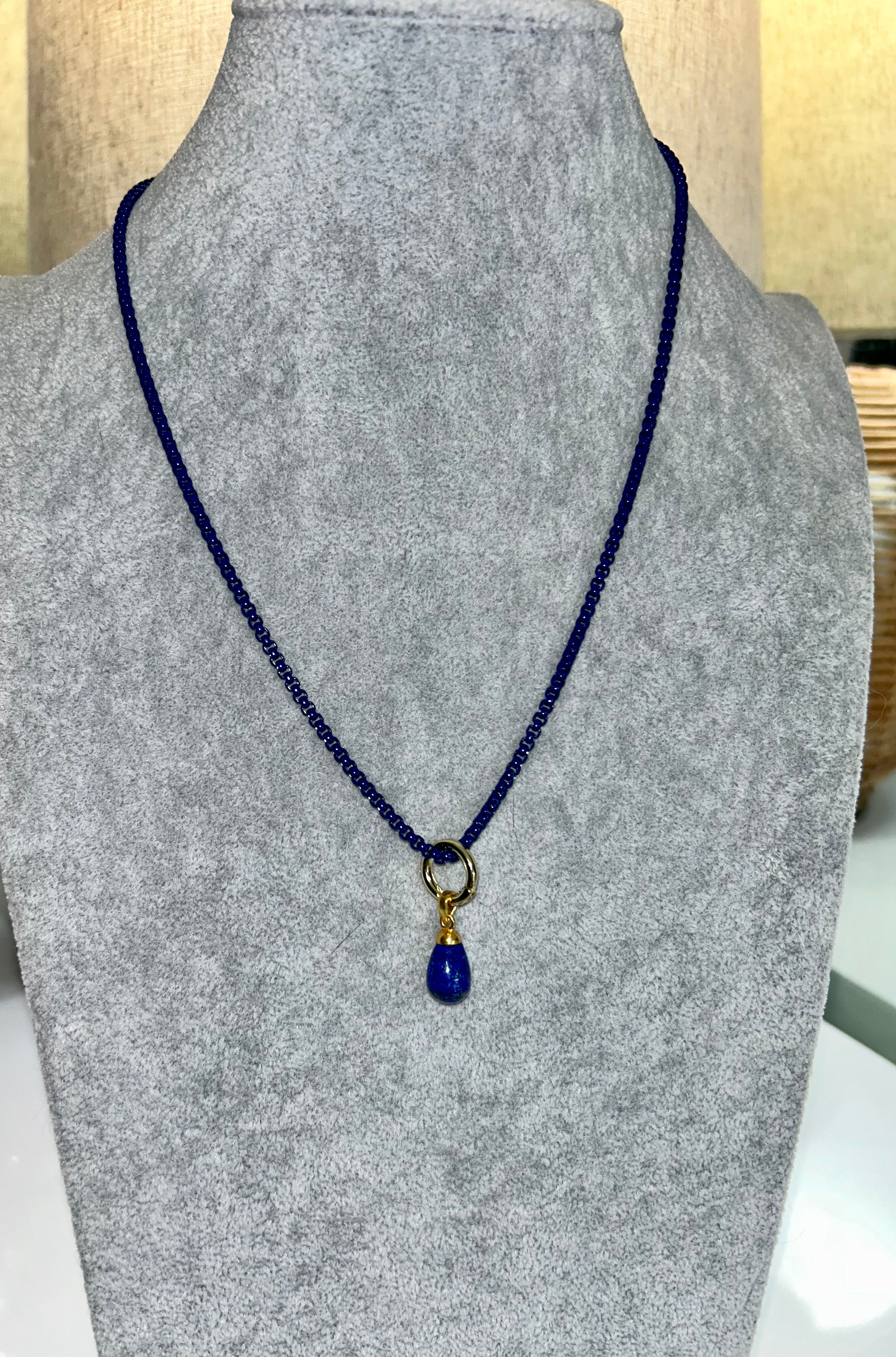 AZUR (Turquoise) Enamel Chain Necklace with Natural Chalcedony Pendant (18"–20")